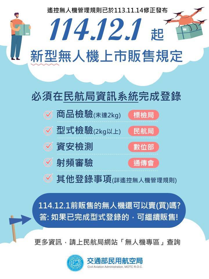 輔導期滿,12月起,無人機販售前需先完成登錄