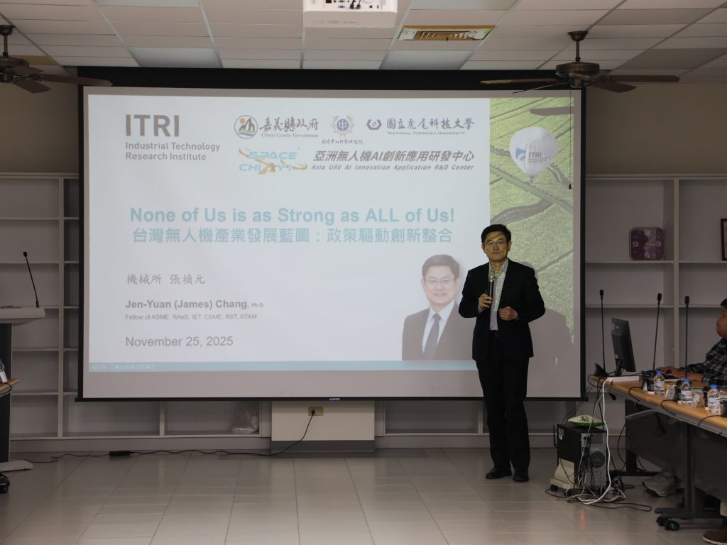 工業技術研究院(工研院)張培仁院長今(25)日下午率領院內協理與各研究所所長、副所長等多位高階主管,蒞臨嘉義縣亞洲無人機AI創新應用研發中心(亞創中心)參訪交流。嘉義縣長翁章梁親自接待,並邀集國家中山科學研究院(中科院)、亞創中心進駐廠商與產學研代表共同出席,針對國際無人機發展趨勢、國內聚落布局與跨域合作需求進行深度討論。