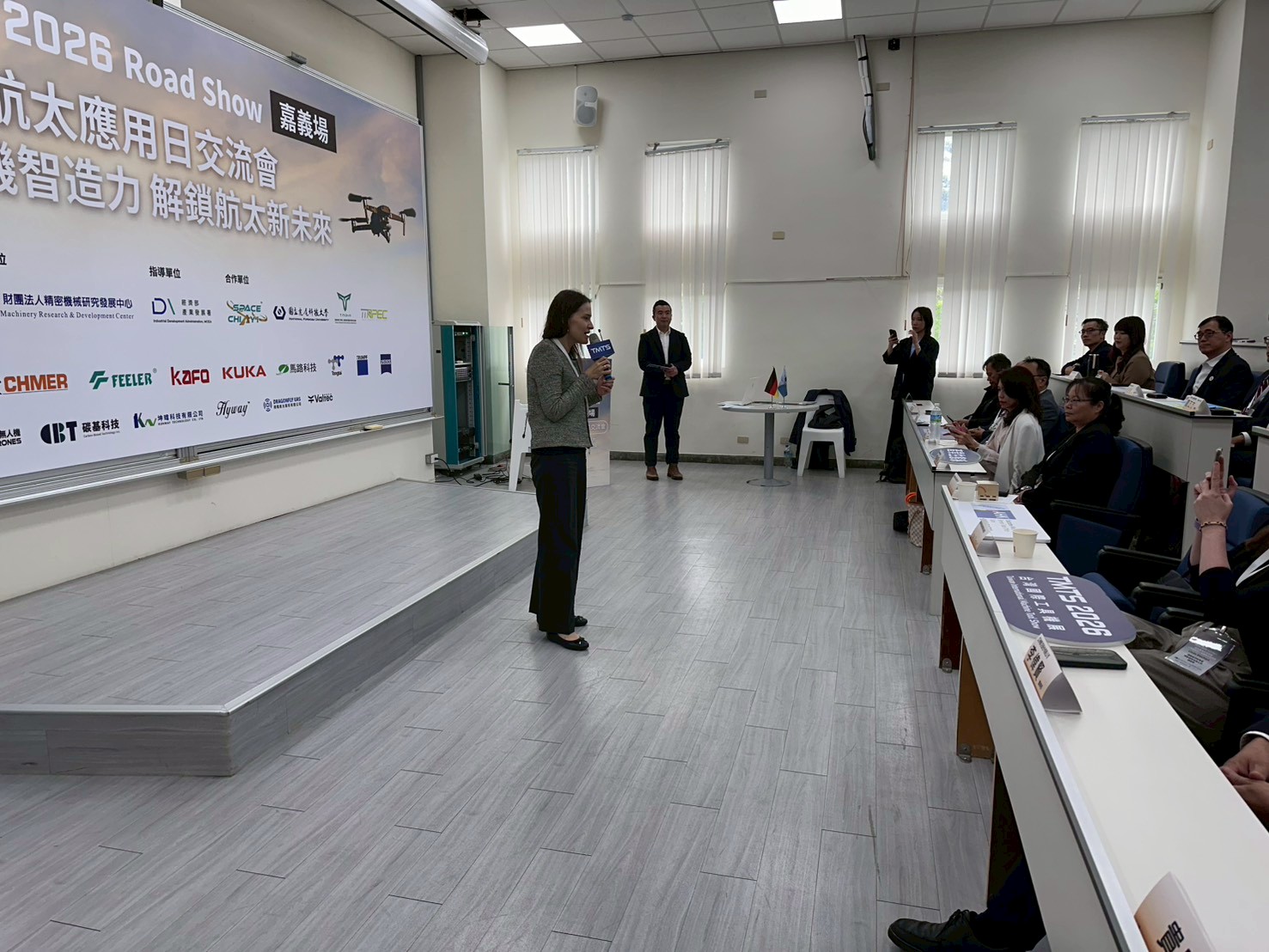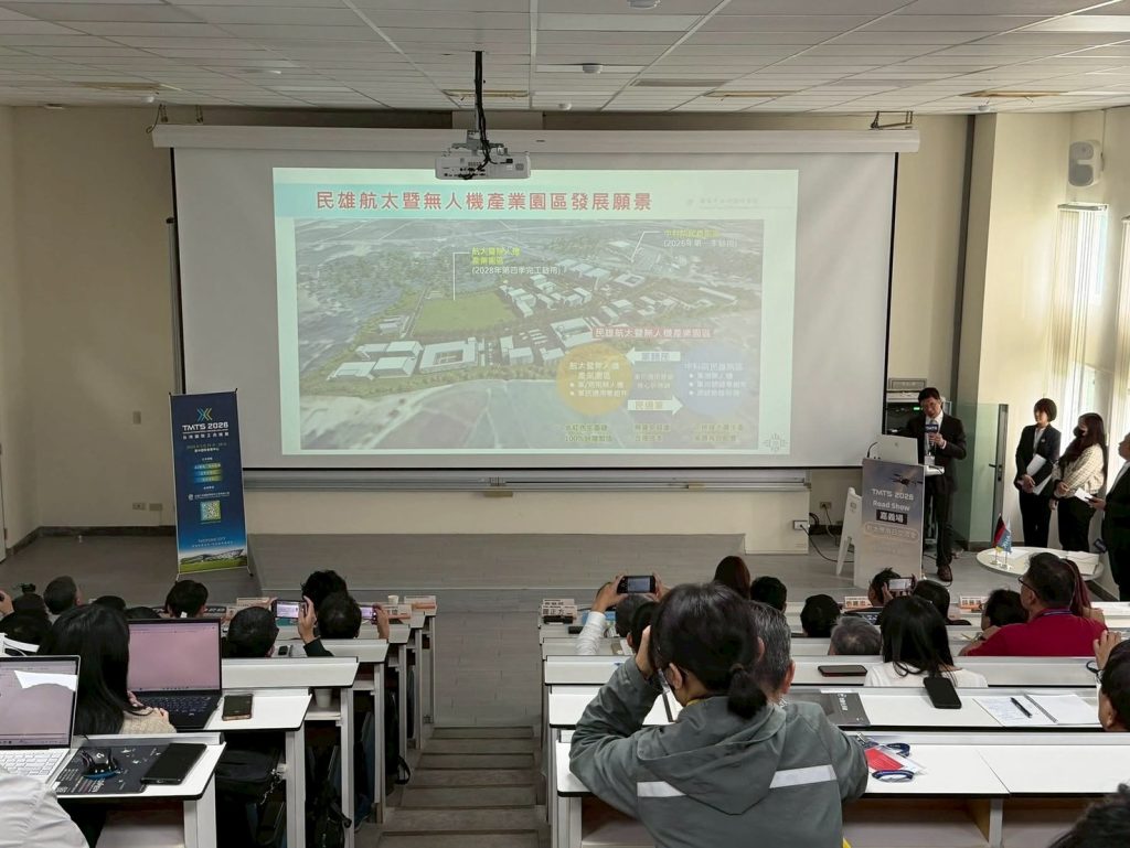 航太應用交流日:工具機智造力,解鎖航太新未來 (嘉義場)Space Chia Yi2025 年 11 月 27 日最新消息, 活動資訊 嘉義縣經濟發展處代表致詞 德國經濟辦事處代表致詞 工具機事業處代表致詞 廠協會 羅理事長簡報 亞太菁英 張副總經理簡報 大合照 大廳廠商靜態展交流