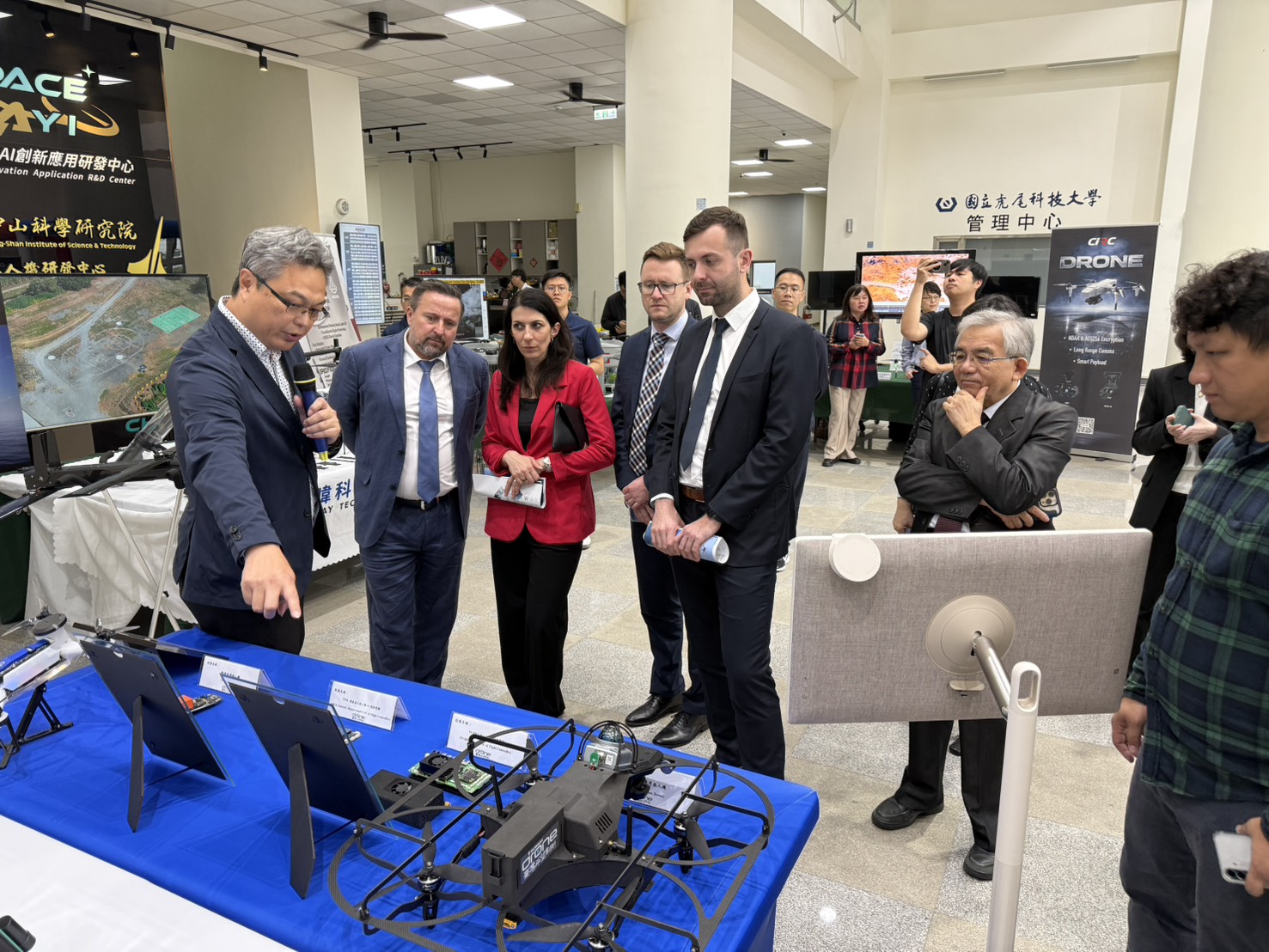 台灣發展無人機非紅供應鏈,國防部今年及明年投入約500億元採購近5萬架無人機,加上公部門需求將上看10萬架,捷克前眾議院議長艾達莫娃今率無人機廠商赴嘉義亞洲無人機AI創新應用研發中心,訪團關注焦點聚焦於雙方無人機產業量能與可能的合作方式。